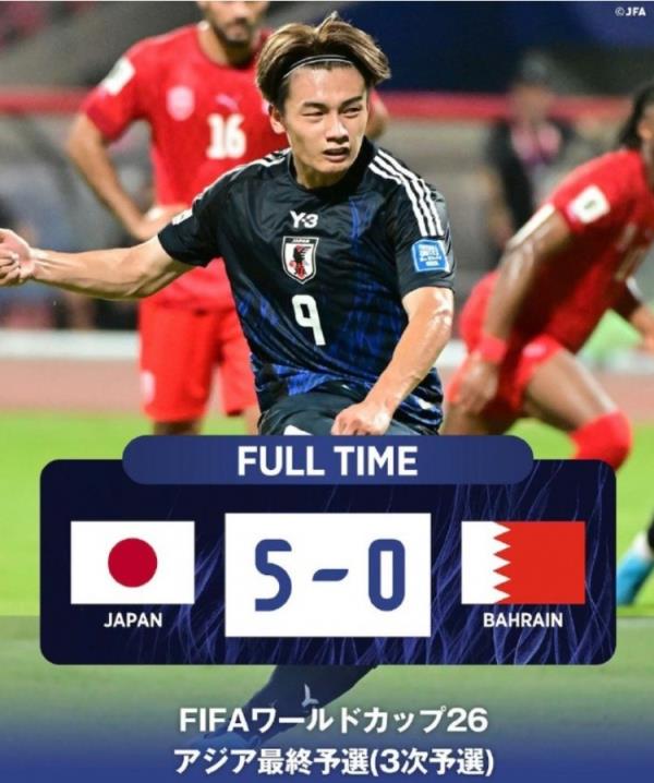 苗原写道:日本5-0巴林,把榜首大战变成了一场惨案,也让国足的0-7不那么让人难以接受了。