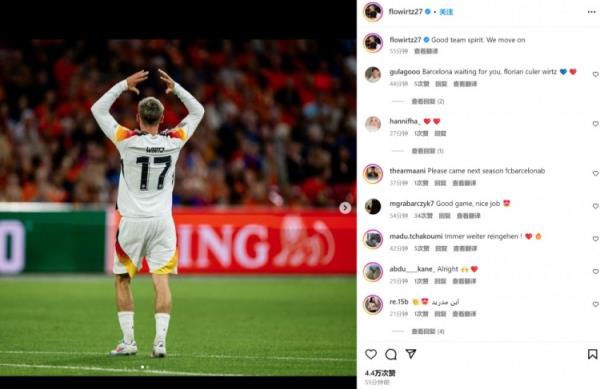 9月11日讯 德国在今日欧国联2-2战平荷兰,维尔茨在赛后通过社媒晒照纪念。